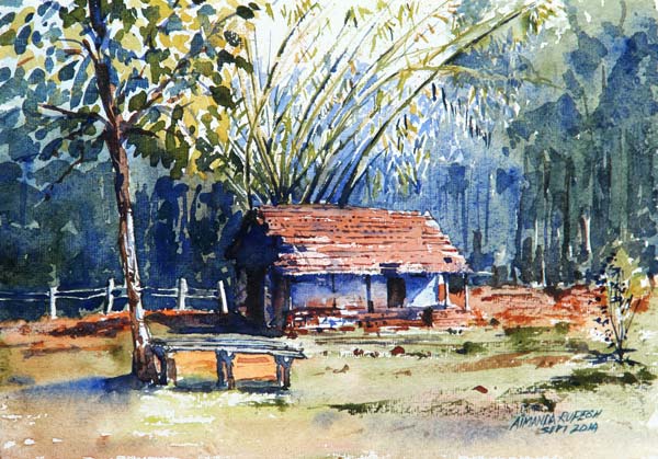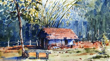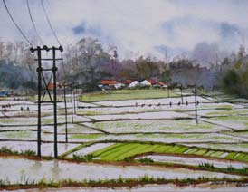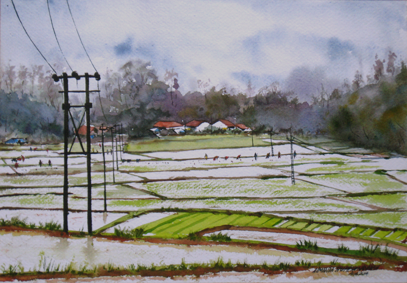 "Paddy Fields" Water Colour on 13.5x9.5" Indian Hand-made Paper