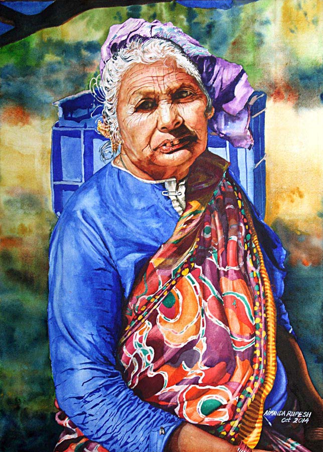 "Paathukutti ~ The Fish Seller" Water Colour on 21x29.5" (Full Imperial) Indian Handmade Paper