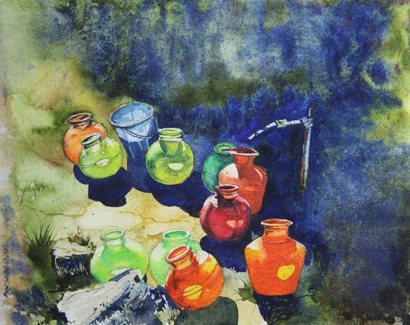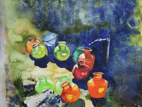 "Water Pots" Water Colour on 13x10" Hand-made Paper