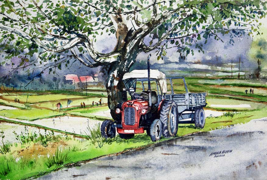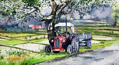 "Tractor" Water Colour on 20.5x13" Indian Hand-made Paper